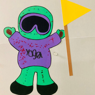 These mountain climbers represent what we use to overcome our obstacles, like doing yoga, taking deep breaths, and using a glitter bottle!